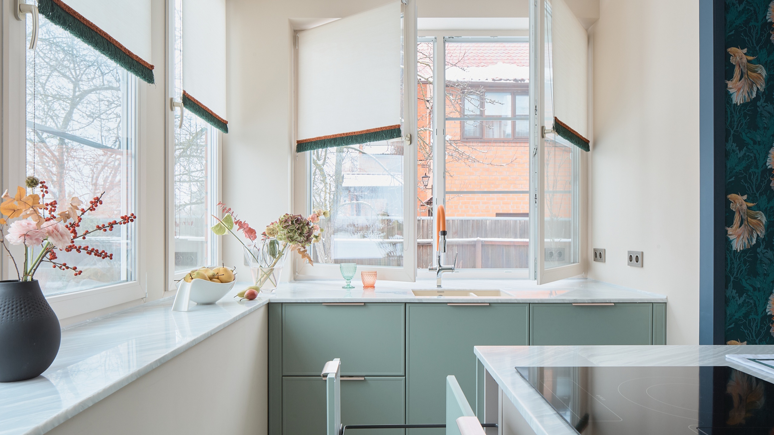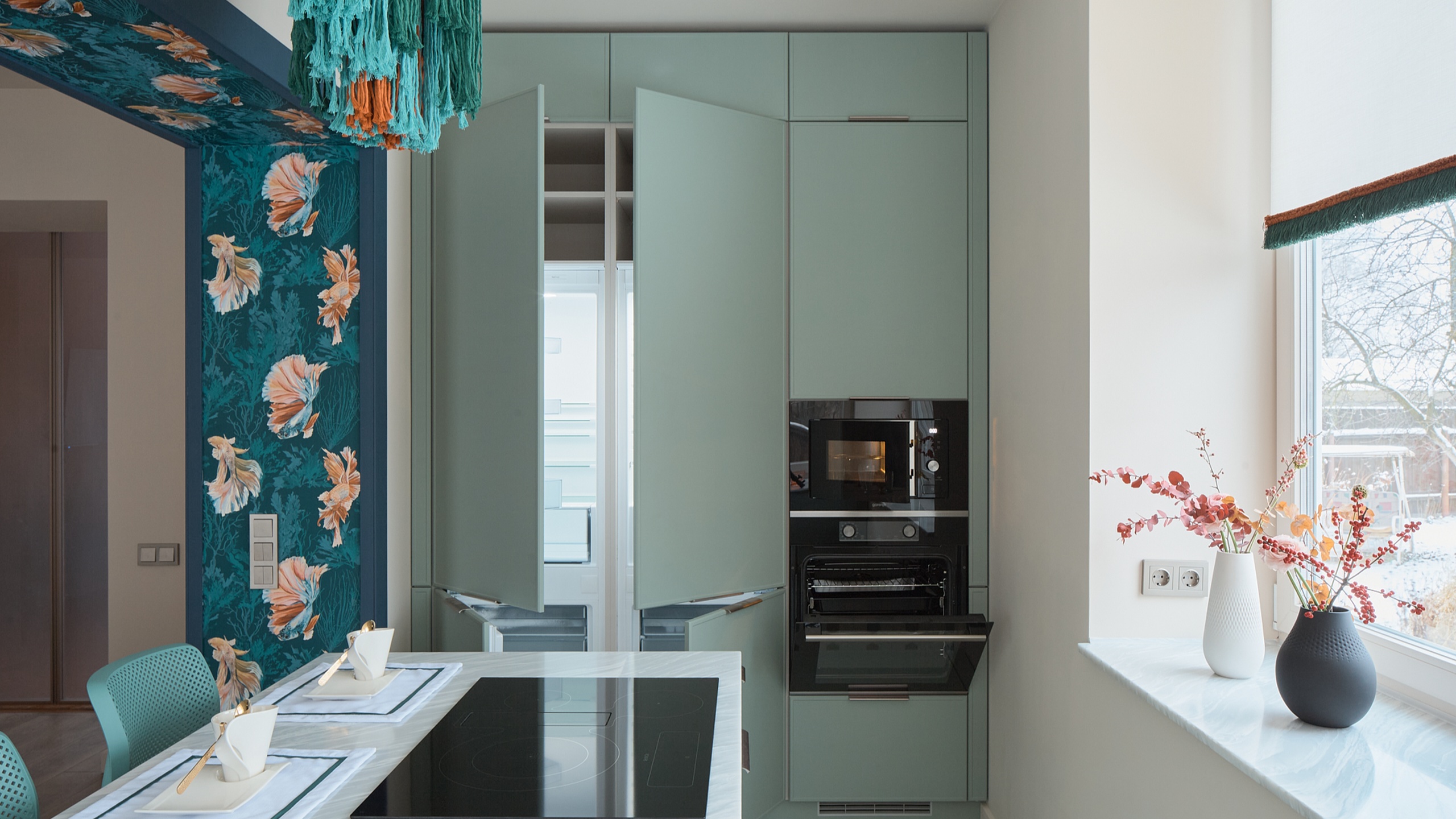 Заказчики этого проекта, семейная пара, увлекаются рыбалкой и часто собираются за столом всей семьёй, включая детей. Их мечтой было создать кухню-столовую, в которой будет достаточно места для каждого, а пространство будет одновременно просторным и функциональным.