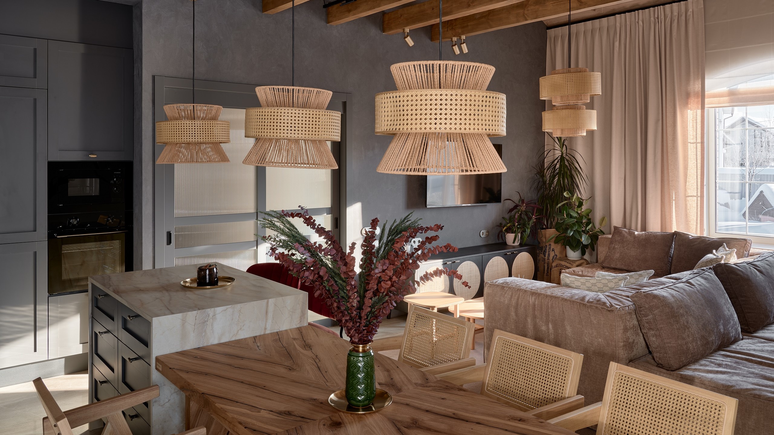 Работая над проектом, Наталия Прозорова обратилась к французскому колониальному стилю, добавив к нему лёгкое фермерское настроение и этнические детали. Пространство стало живым и естественным, сохранив динамику, необходимую для активной семьи, и обретя уютную глубину.