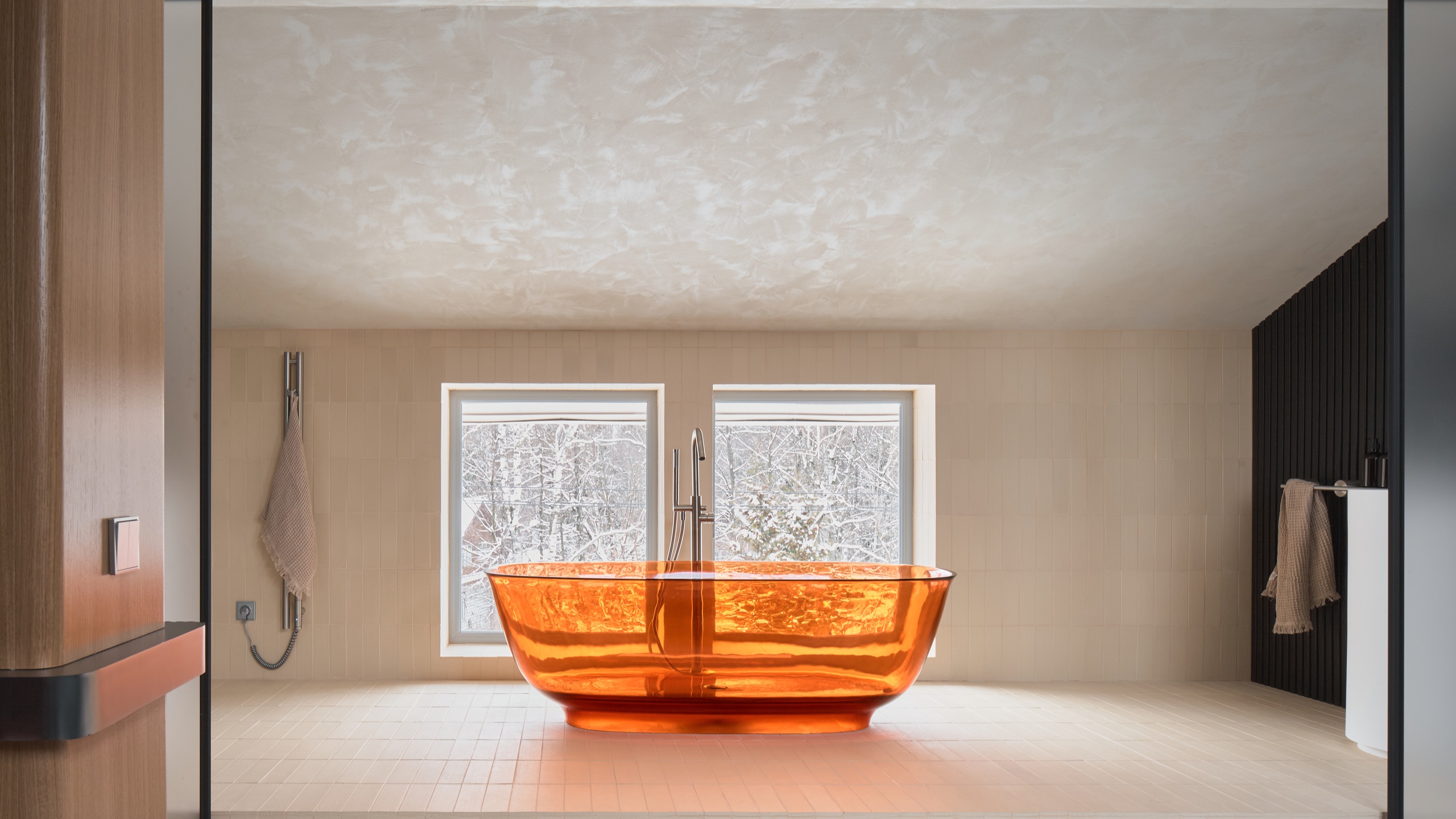 Мансарда с прозрачной ванной: керамогранит Kailas