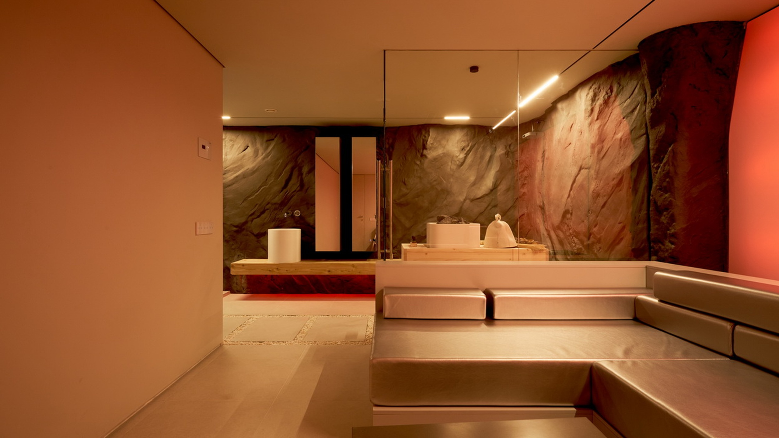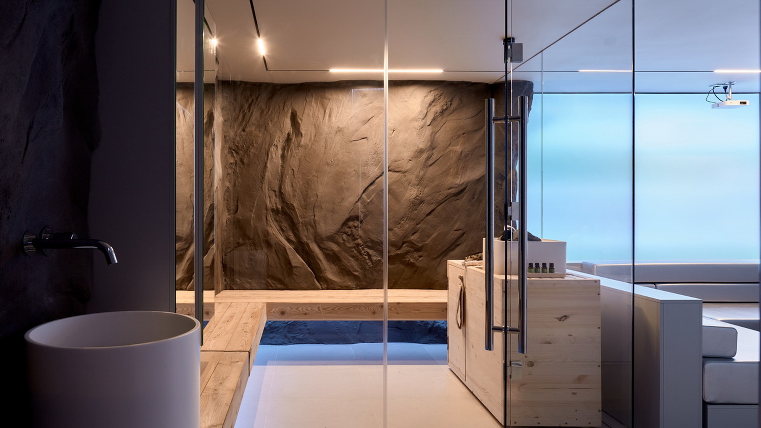 Молнии и норвежские скалы: сауна с керамогранитом Luna