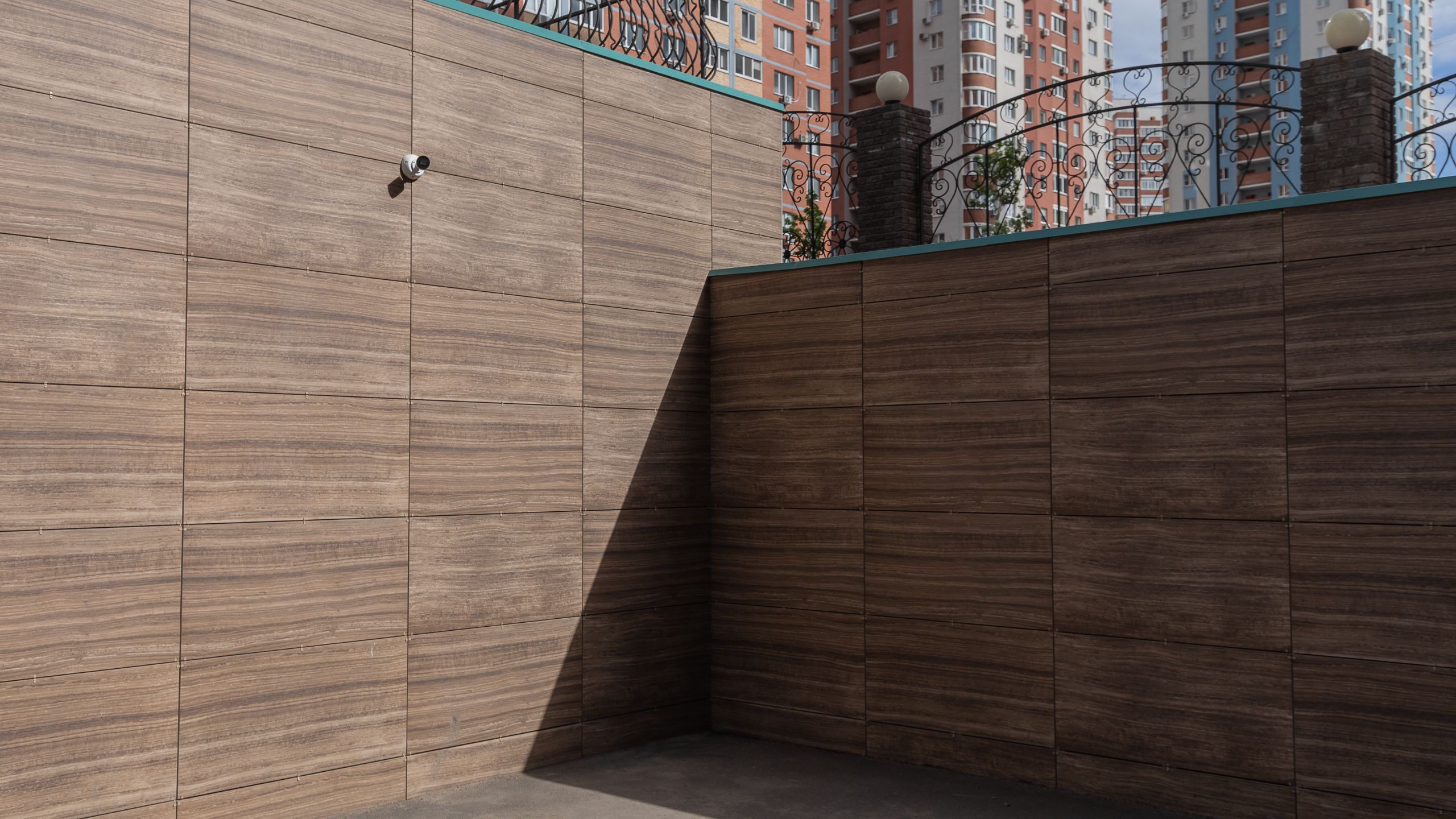 Боярский Двор - это жилой комплекс премиум класса, расположенный на пересечении улиц 7-я, 8-я просека и Солнечная. Фасады трех домов отделаны керамогранитом ТМ Estima, коллекция Jazz. Материал с высокой точностью имитируем натуральный камень.