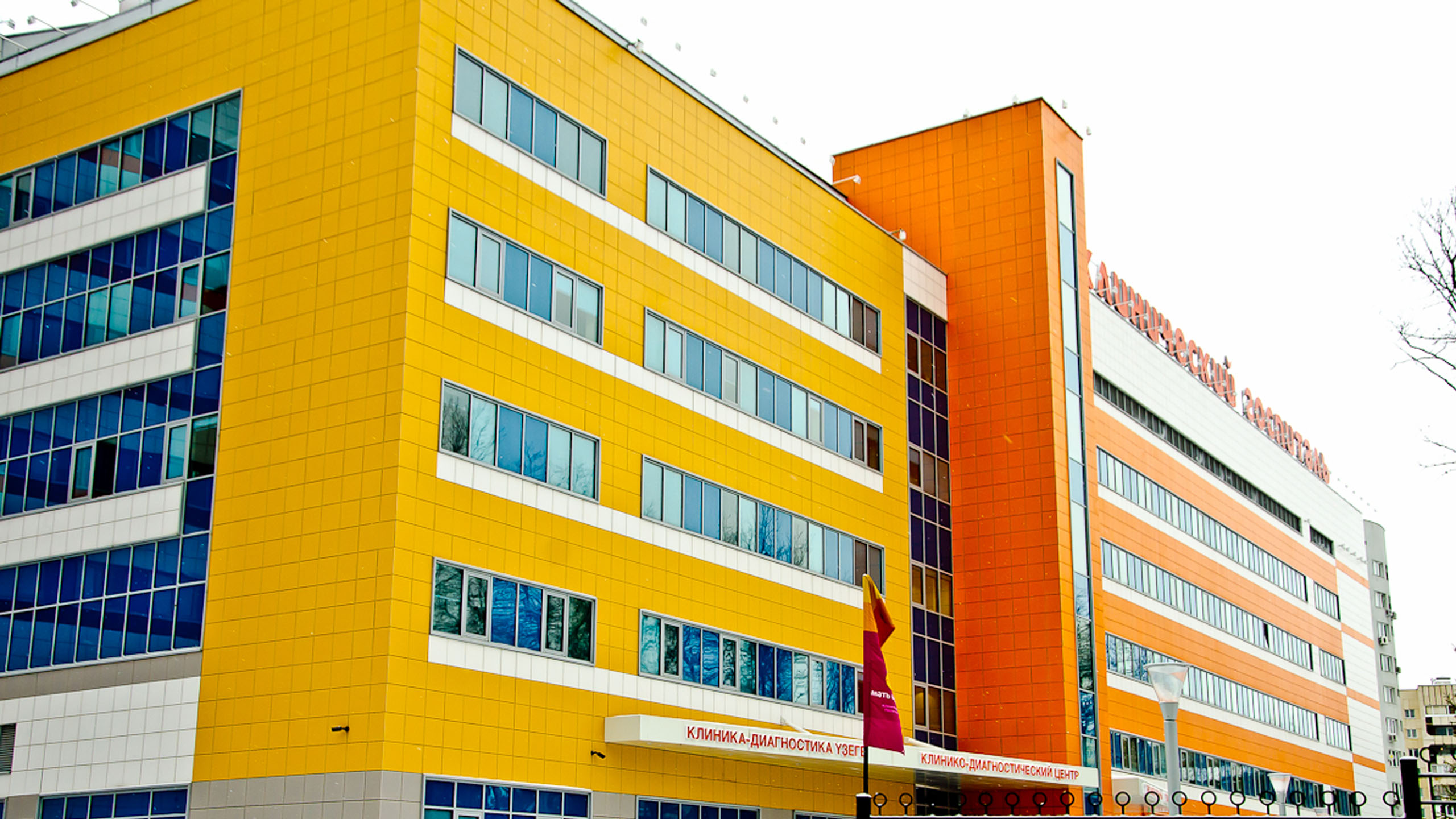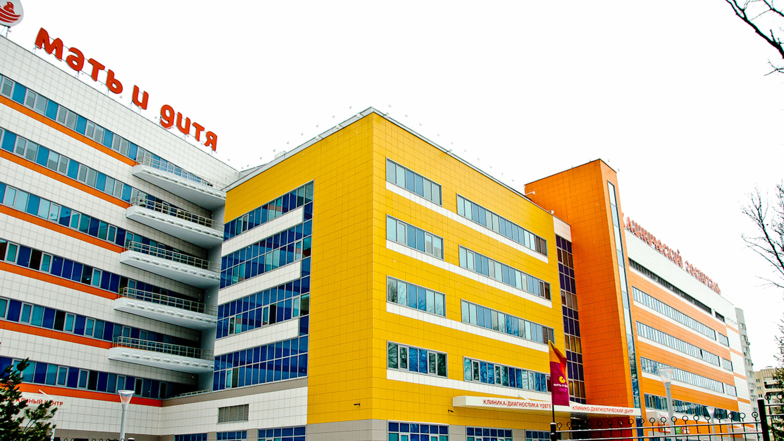 Перинатальный центр, расположенный рядом с лесопарком и рекой Уфа.