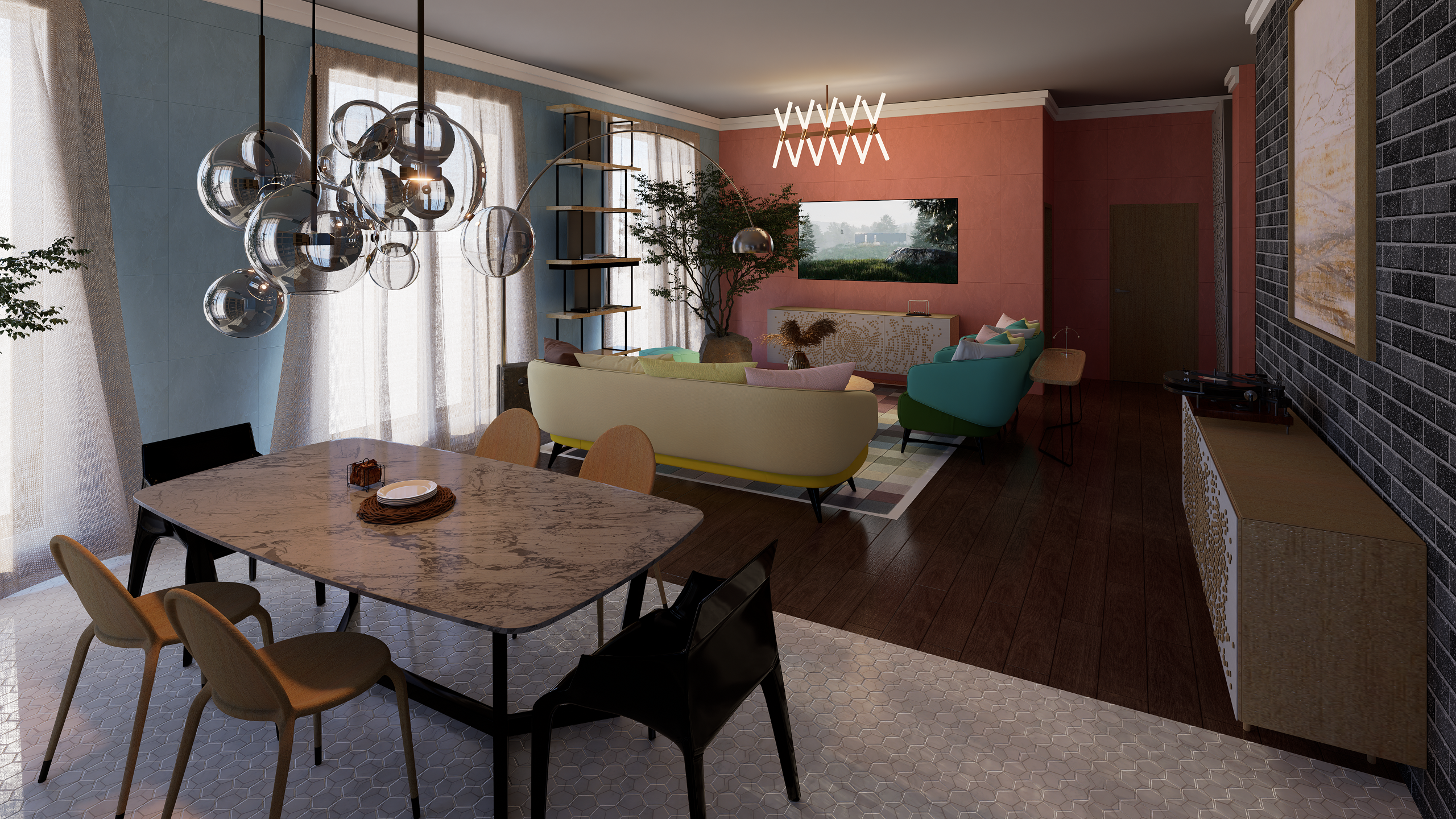 Проект квартиры для одного в стиле мемфис