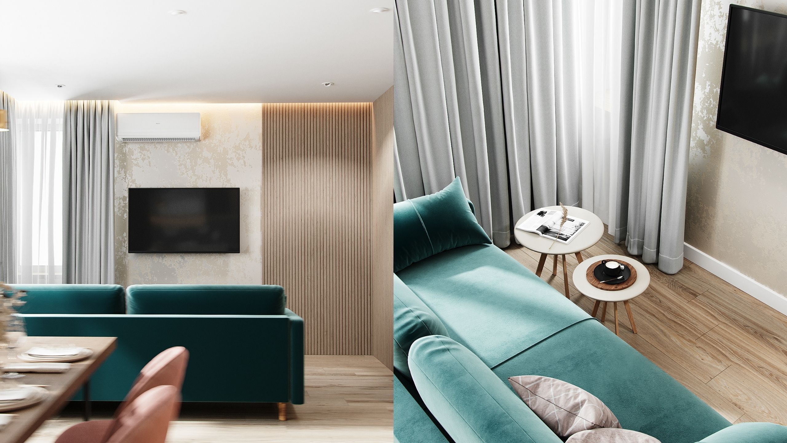 Латыпова Алия разработала проект двухкомнатной квартиры для молодой девушки. Современная мебель, обилие натуральных материалов и нежных, пастельных тонов в отделке - дизайнер учла все пожелания заказчицы, чтобы создать светлый и ненавязчивый интерьер. Излюбленный прием дизайнеров - зонирование при помощи различных видов напольных и настенных покрытий. В данном проекте Алия также использовала его. В зоне прихожей и ванной комнаты уложили керамогранит из коллекции Alba с имитацией мрамора, а на кухне и в спальне - керамогранит под паркетную доску Selection.