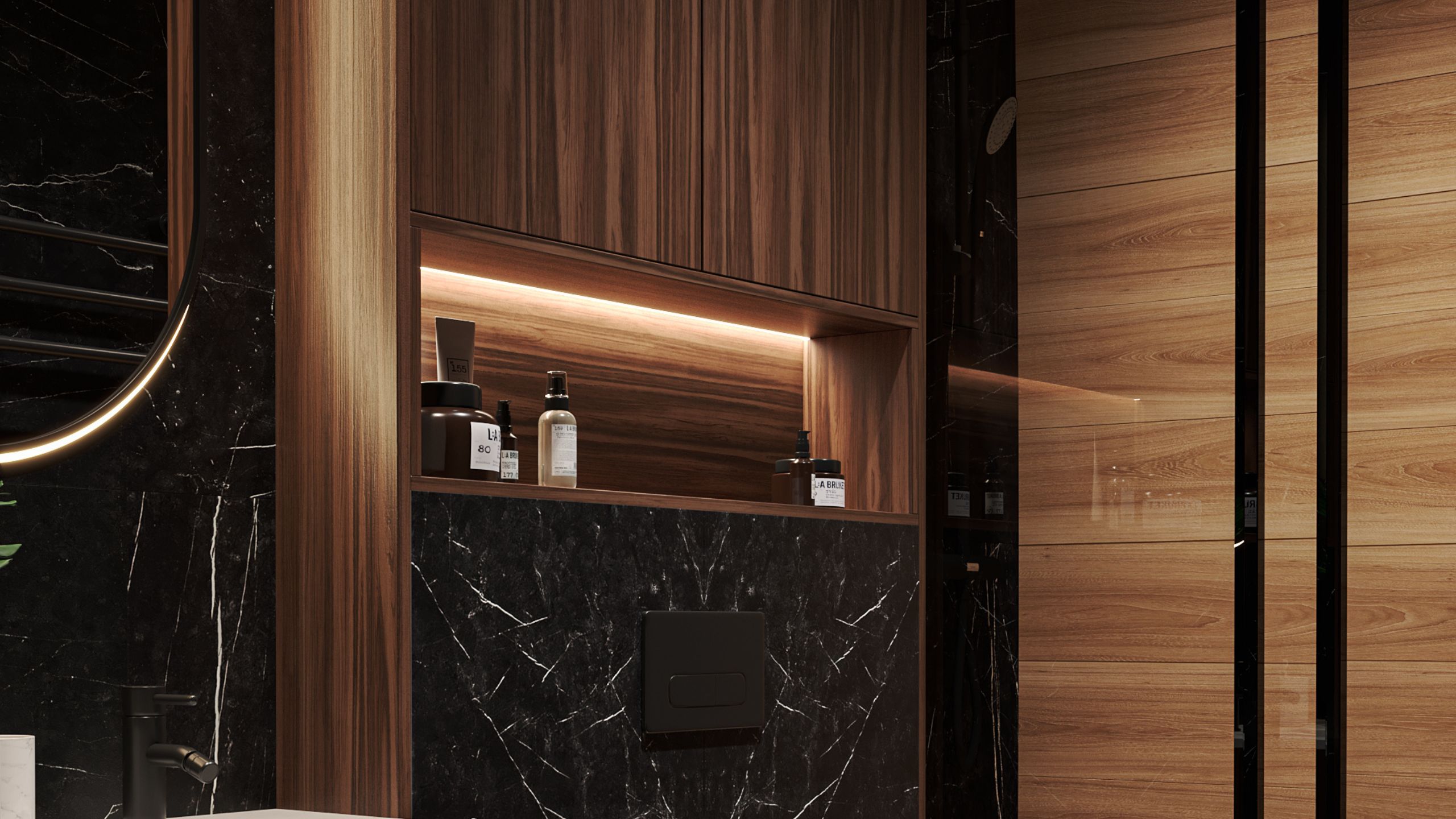 Для укладки пола в гостиной Кристина выбрала керамогранит из коллекции Traffic в цвете 01, а одну из душевых комнат украсила коллекция Vision в цвете 03.