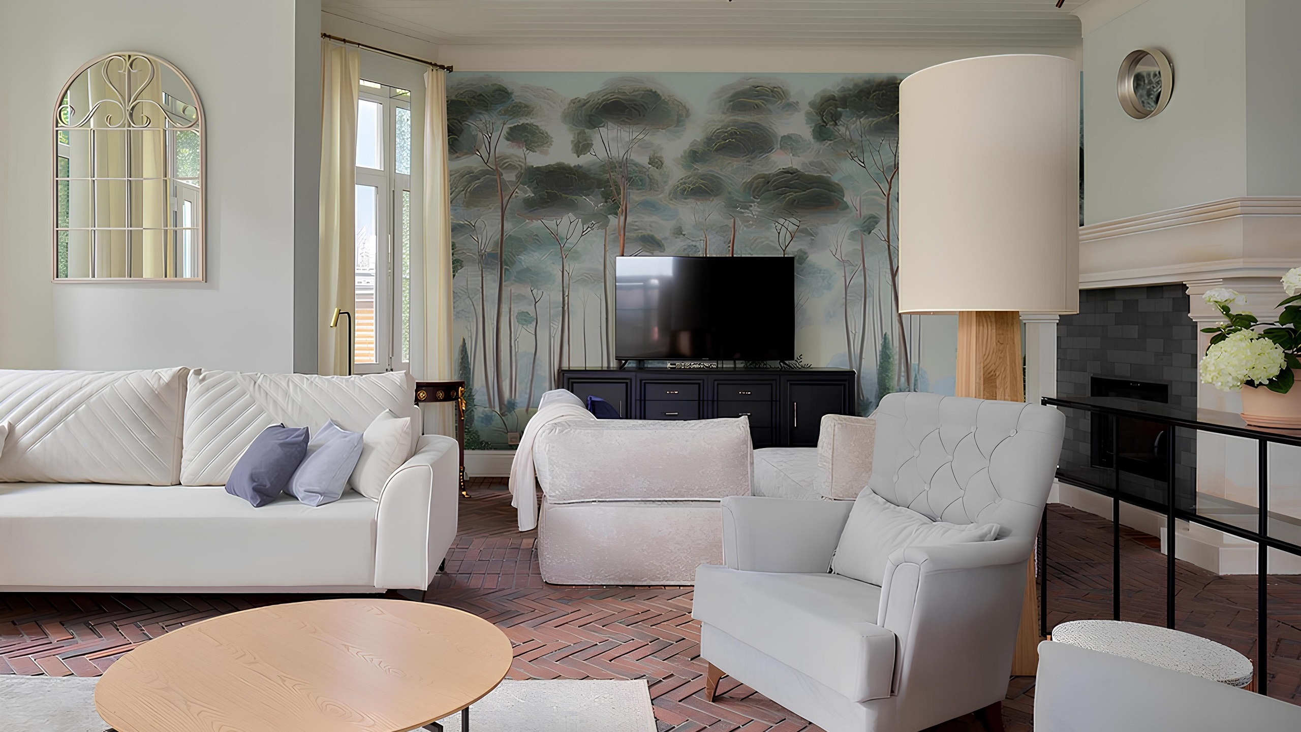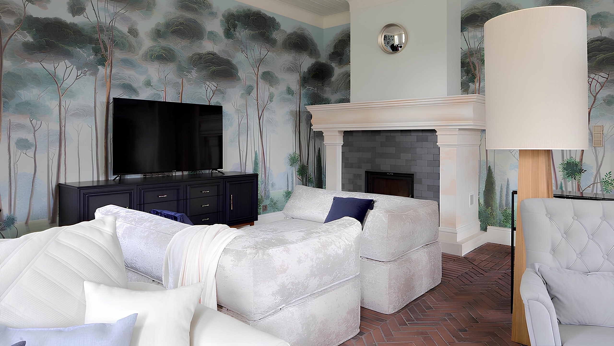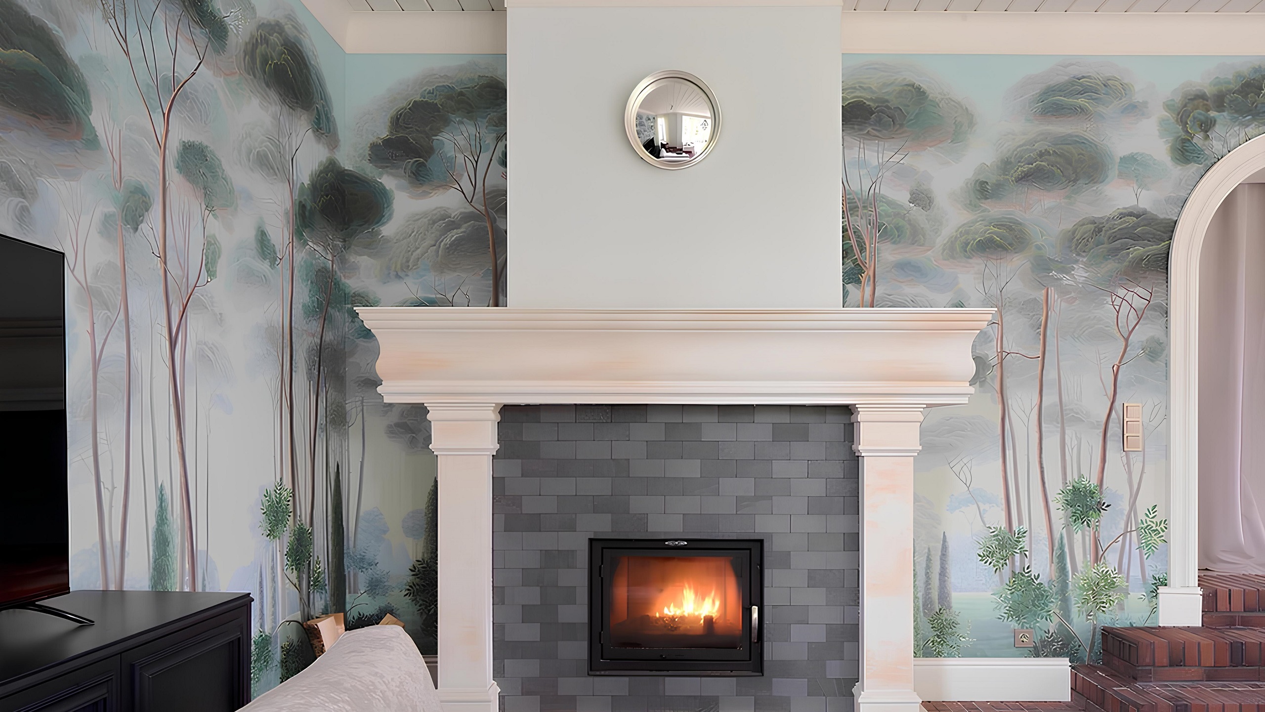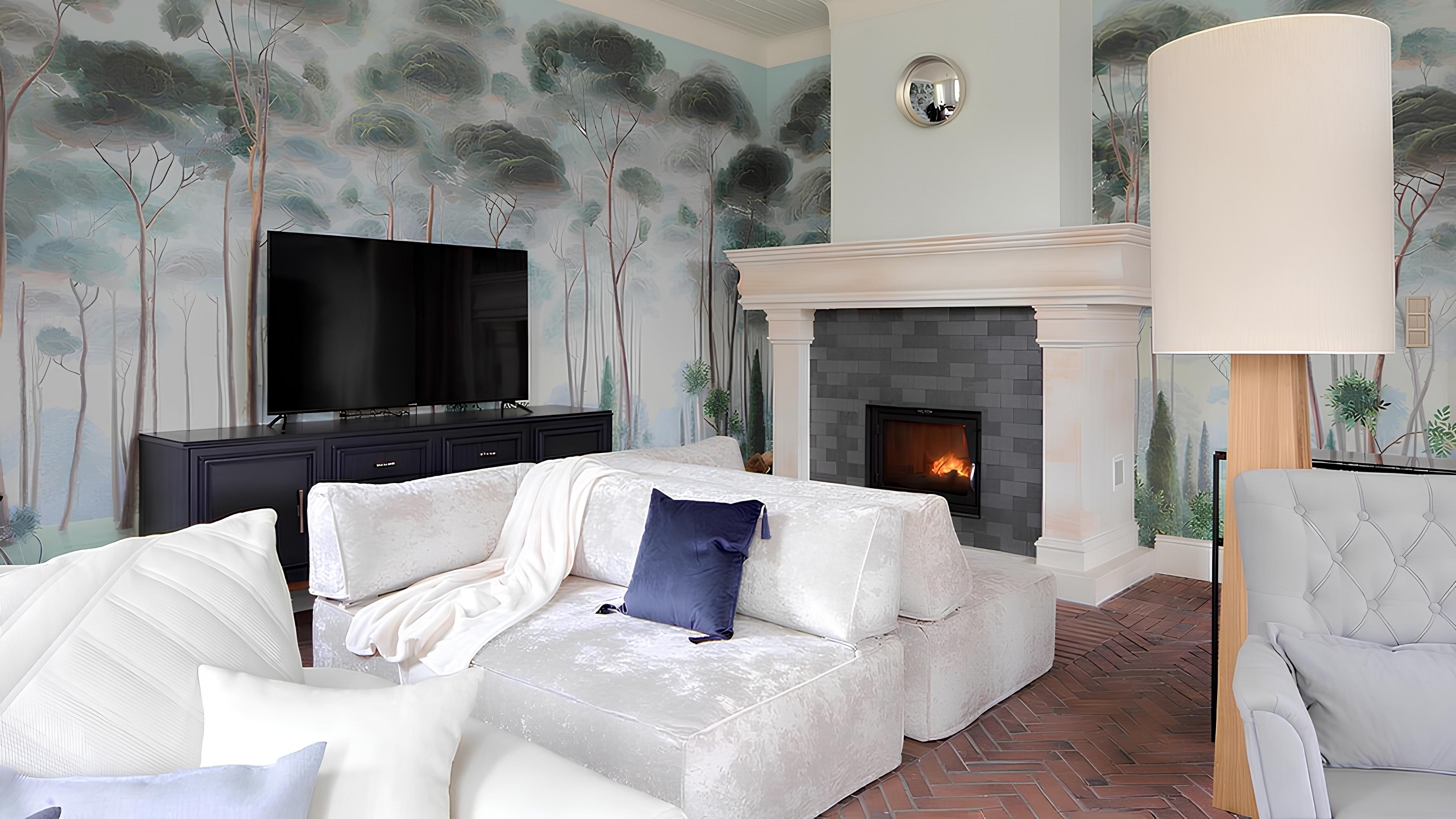 Каминная зона в усадьбе: керамогранит Terra и Luna
