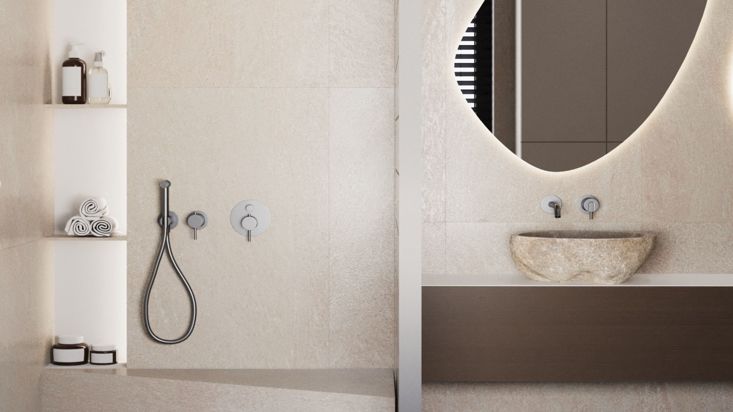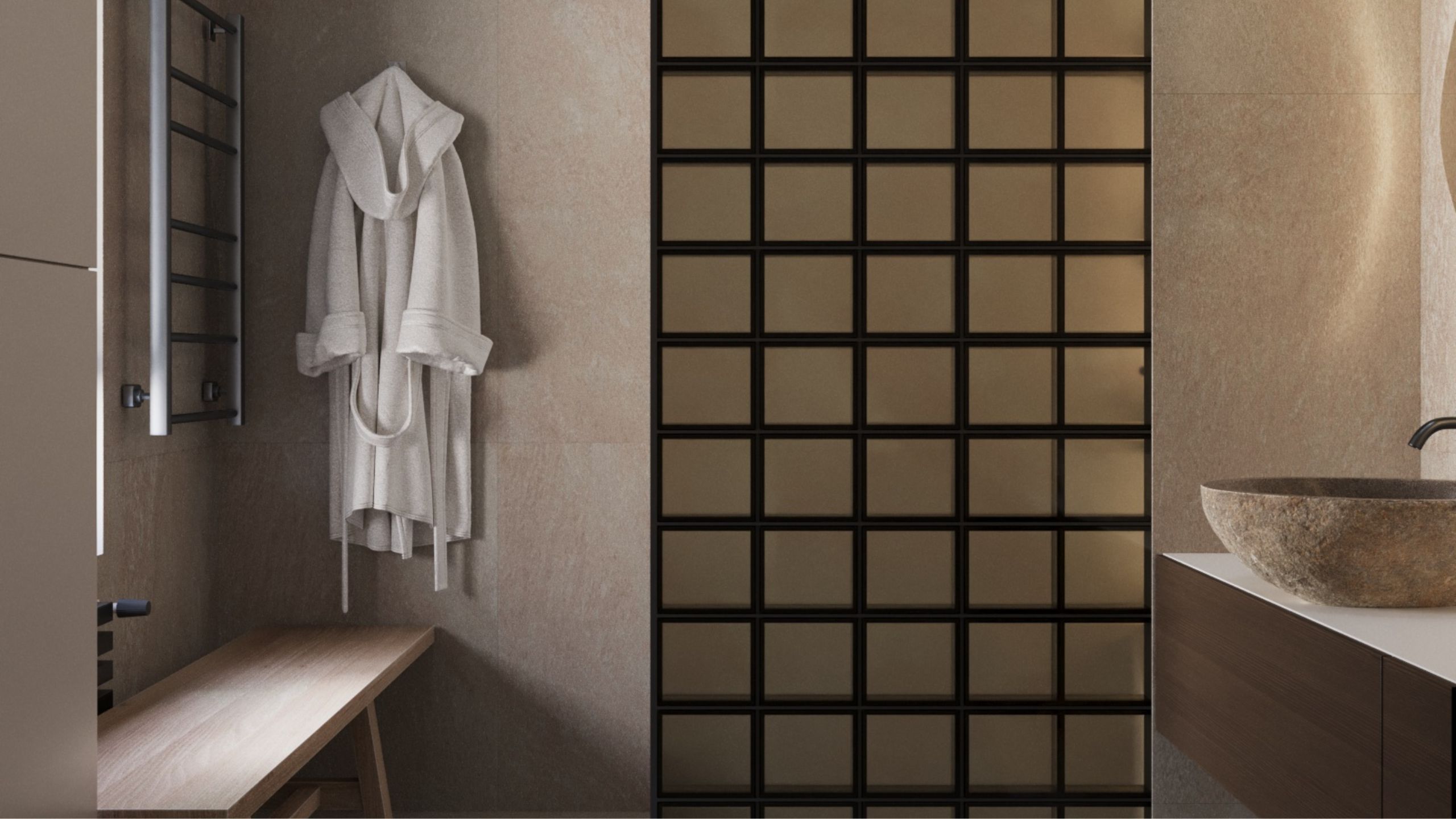 Ванная комната с лесным пейзажем: керамогранит Tramontana
